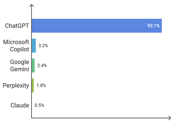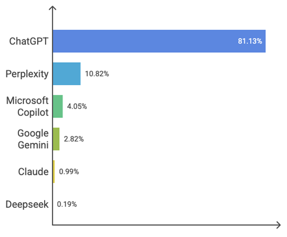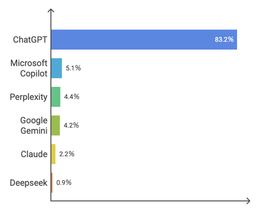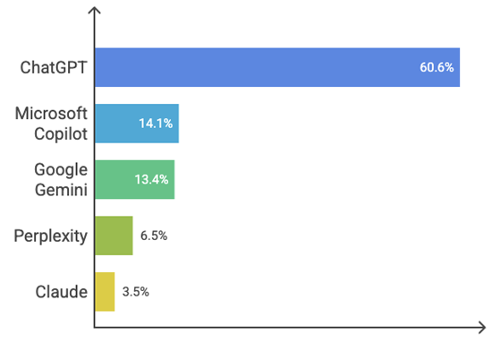 2025年9月の Statcounter のデータによると、世界全体のAIチャットボット市場シェアは以下のようになっています: