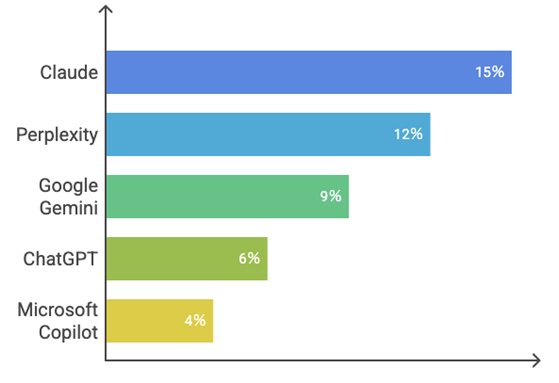 この数字を見ると、成長率ではClaudeとPerplexityが先頭を走っています。特にClaudeは安全性と倫理性を重視する設計が企業ユーザーに評価されており、ビジネス利用の面で一気に存在感を増しています。