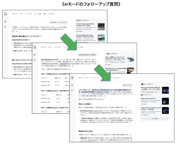 このような「対話的探索」が可能なのは、AIモードの特徴です。