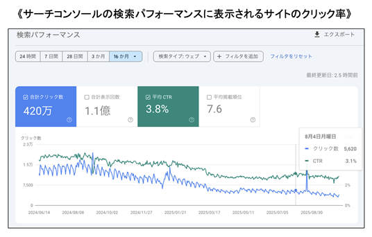 AIモードでは、検索結果の上部にAIによる概要(要約+推奨リンク)が表示されるため、従来の自然検索リンクのCTR(クリック率)は低下する傾向にあります。