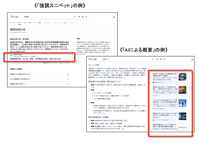 「強調スニペット」と「AIによる概要」、それぞれに強いコンテンツ戦略