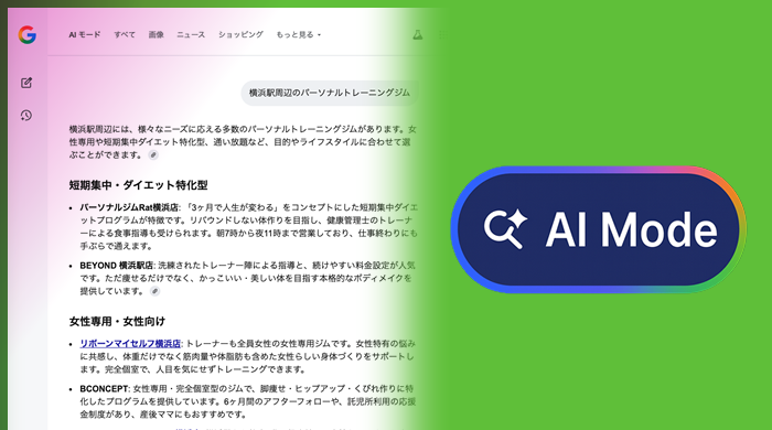 「横浜駅周辺ではそれなりに認知もあるし、SEOでも上位表示されている。でもGoogleのAIモードやChatGPTに『横浜駅周辺のパーソナルジム』と聞くと、うちのジムがまったく出てこない」