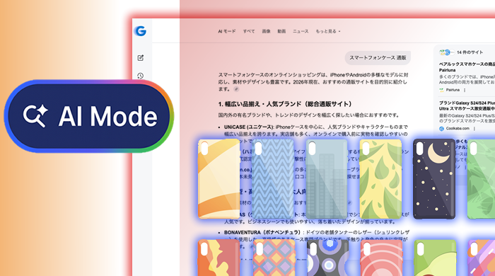 本記事では、AIモードが生成しやすい「スマートフォンケース 通販」の回答構造を冒頭で整理し、その上でAIが通販サイトやブランドをどんな軸で分類しているのか、なぜ特定のサイトが選ばれやすいのか、そしてスマホケース通販がAIモードで取り上げられるために必要な情報設計を、AIO(AI最適化)の視点から解説します。