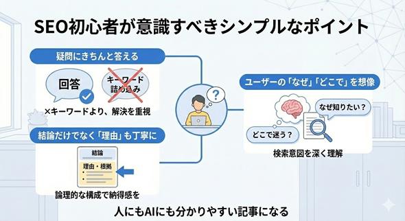 AIモードとGeminiの違いを理解したうえで、SEO初心者の方に意識してほしいポイントは、とてもシンプルです。