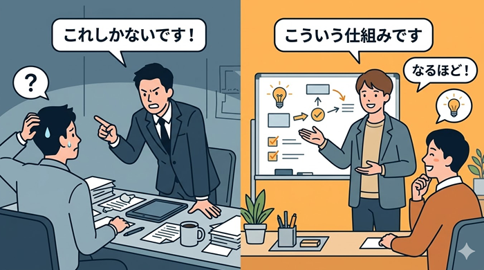 まず前提として、人は基本的に、他人から説得されることを好みません。たとえ内容が正しくても、「そうしなさい」「それが正解です」という圧を感じた瞬間、心の中にブレーキがかかります。これは心理的な防衛反応です。
