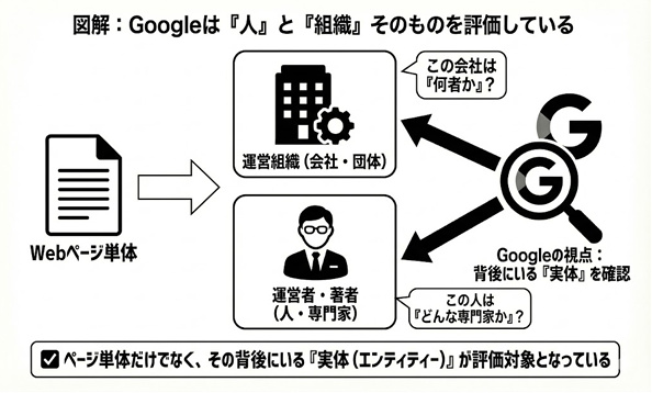現代のSEOで特に重要なのが、「人」と「組織」そのものが評価対象になっているという点です。