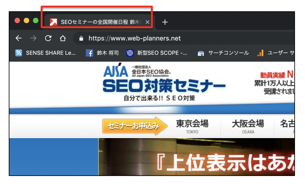 「SEOセミナー」というキーワードで上位表示したいページのタイトルタグにはなるべく先頭に「SEOセミナー」というキーワードを含めるようにして: